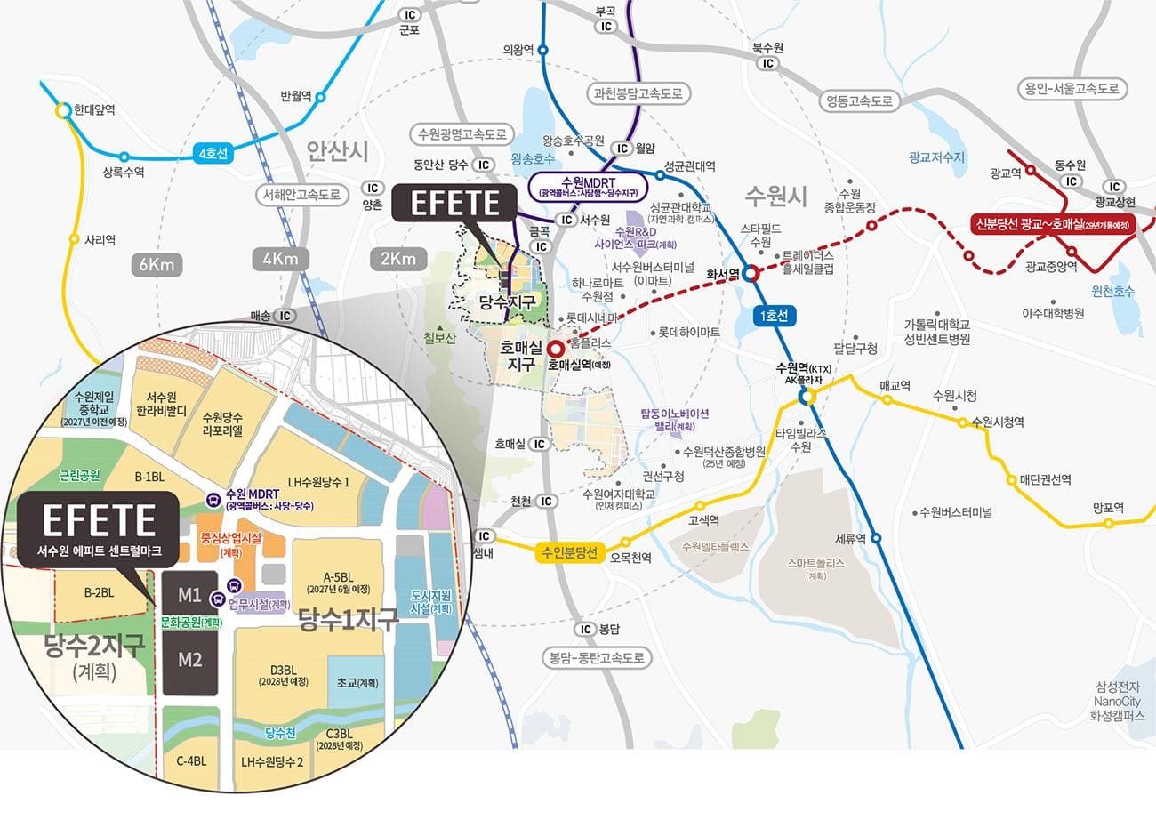 신분당선 호매실역(2029년 개통예정), 서해안ㆍ평택파주고속도로, 과천봉담고속화도로, 수원MDRT를 통한 사통팔달 광역교통망